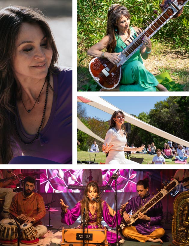 De manera complementaria, Vidya Devi Dharmanath es cantante y compositora, dedicada a la práctica y difusión de los mantras como cantos devocionales y como una vía profunda de meditación. Ha grabado varios discos y continúa expandiendo este aspecto del Yoga como sadhana sonora. En los últimos años, ha realizado viajes de estudio y peregrinación a India y Nepal, profundizando su vínculo con la tradición y comenzando el aprendizaje del sitar, instrumento que integra como práctica meditativa y devocional.